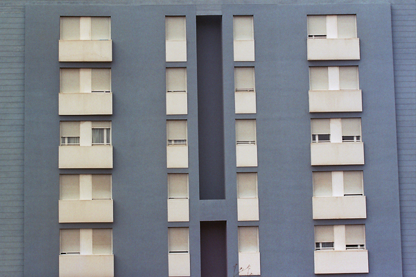 Bloque de viviendas en el barrio de “Es Molinar” cerca del cruce de dos vías de circulación rodada intensa, la autopista al aeropuerto y la vía de cintura.